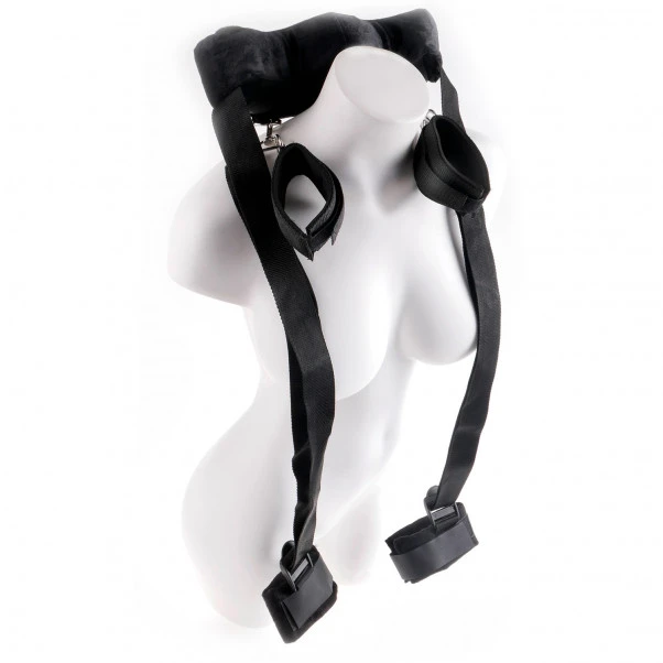 Fetish Fantasy Bondage-sele med Mansjetter gjør det mulig å nyte et hav av frekke stillinger. Med selen kan hun nemlig sitte og ligge i alle tenkelige stillinger, som ellers kan være anstrengende.