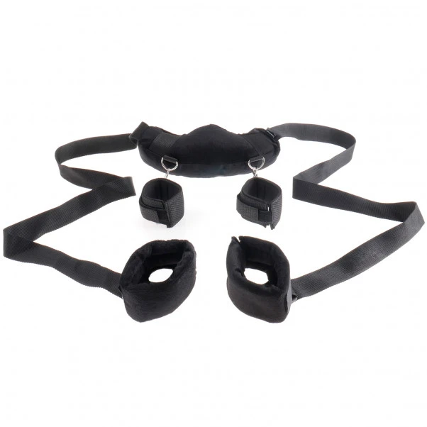 Stroppene mellom benmansjettene og nakkestøtten er justerbare, og gjør det derfor mulig å utforske mange forskjellige stillinger. Kombiner, spenn, og fastgjør de forskjellige delene som dere har lyst – det er et hav muligheter.