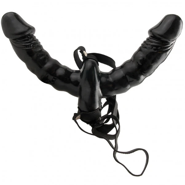 Den dobbelte strap-on kan brukes både brukes vaginalt og analt, og skjemmer bort både mottakeren og giveren samtidig.