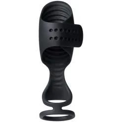 Skyv penis inn i den elastiske åpningen og bruk den andre ringen for å gi ballene dine et kjærlig klem. Nyt den pirrende stimuleringen av det teksturerte sleevet når du spenner det rundt skaftet. Grepet på sleevet kan tilpasses, slik at du kan justere det for å passe til din størrelse og ønsket stramhetsnivå.