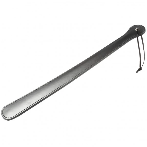 Paddelen måler 48 cm, og bredden er 5 cm på sitt bredeste. Håndtaket og skaftet går elegant ut i ett, og i enden finner dere en stropp til håndleddet, sånn at pisken ikke glipper under de kinky lekene.