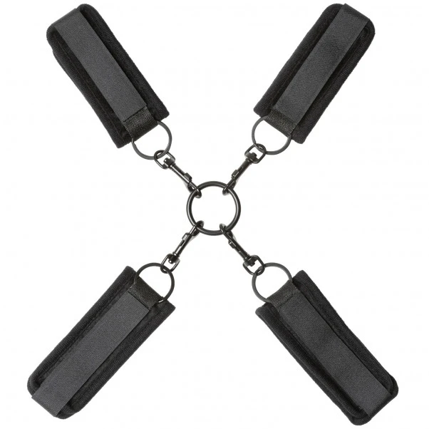 Settet består av to mansjetter til håndleddene, samt to mansjetter til anklene og en fikseringsring. Her kan mansjettene festes via de karabinkrokene som følger med.