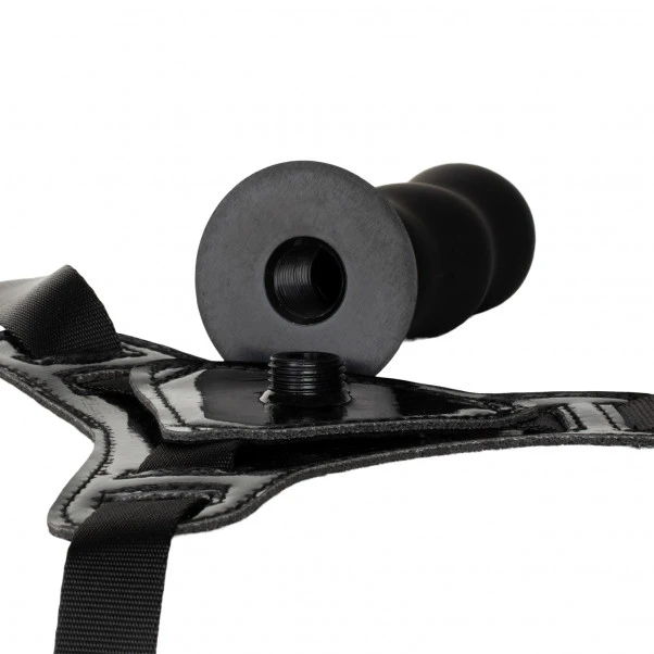 MATERIALE: Harness: Fløyel og PVC. Dildo: Silikon og ABS plast.