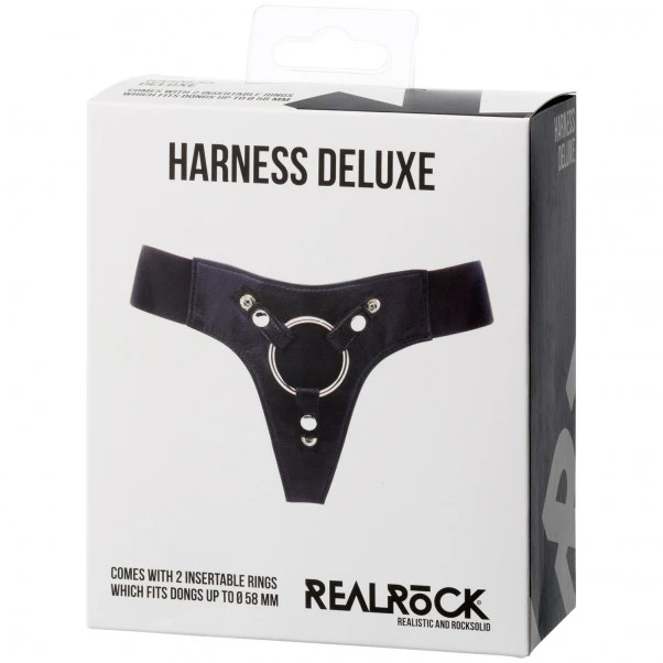 Utlev deres mest pirrende pegging og strap-on fantasier med dette flotte seletøyet Elastic Deluxe fra Realrock.
