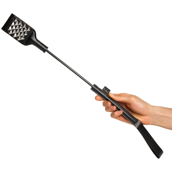 Velg en side og piff opp spankingen med den firkantede pisken med pigger fra Sex & Mischief. Den ene siden er glatt, mens den andre er dekket av metallpigger for litt lett smerte og fullstendig nytelse.