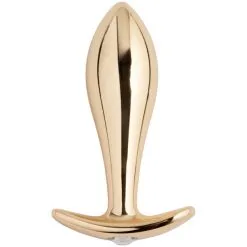 Kom i gang med utforskningen av bakdelen din med denne nydelige gullpluggen. Bruk ditt foretrukne glidemiddel for å gjøre det lettere for den avsmalnende spissen å gli inn, og nyt den kalde følelsen fra metallet. Den stilfulle bunnen holder pluggen på plass mens du leker med andre erogene soner.