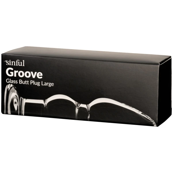 En fest for øynene og de følsomme anale nerveendene–denne Groove store analpluggen i glass fra Sinful er elegant, tung og klar til å utforske “bakdøren”.