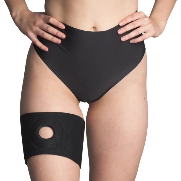 Det justerbare seletøyet festes til låret med hekter og har en mønstret indre overflade, slik at den bli hvor den skal når dere leker. Gli din yndlingsdildo gjennom O-ringen og slå deg løs.