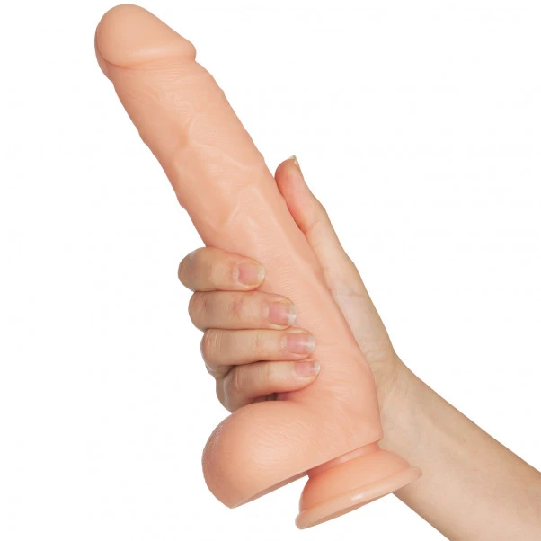 Dildoens innbydende skaft er prydet av tydelige årer og har et markert penishode for målrettet stimulering. Den faste pungen i enden av dildoen fullbyrder det realistiske uttrykket og gir deg en virkelighetsnær opplevelse.